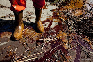 As for impacts being felt right now, Nola.com has a dispiriting article on the impossibility of removing the oil from the spill out from Louisiana's marshes. The picture painted is a grim one: Oil that has rolled into shoreline wetlands now coats the stalks and leaves of plants such as roseau cane -- the fabric that holds together an ecosystem that is essential to the region's fishing industry and a much-needed buffer against Gulf hurricanes. Soon, oil will smother those plants and choke off their supply of air and nutrients.